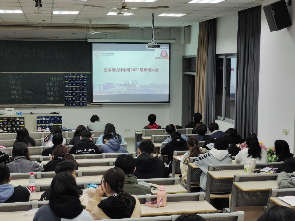 11月8日,艺术与设计学院在线召开2021级新生学风建设主题教育活动,党总支副书记胡晓清以《扬帆起航做新时代的奋斗者》为题做了主讲报告,2021级全体学生参加。