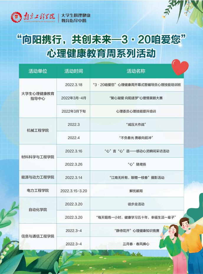 为加强心理育人工作建设,健全学校心理健康教育网络,构建温暖和谐育人环境,营造积极健康校园文化,近日,永利官网开展“3•20咱爱您”心理健康周主题系列活动,本次活动由校大学生心理健康教育指导中心联合学院心理辅导站开展,以“向阳携行,共创未来”为主题,得到了全校师生热烈的响应与积极参与。
