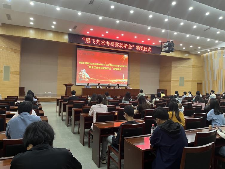 近日,艺术与设计学院“晨飞艺术考研奖助学金”颁奖仪式在动漫影视厅举行,学院党政负责人、南京汇博晨飞艺术培训有限公司负责人、2022届“晨飞艺术考研奖助学金”获奖学生以及部分学生代表共同参加颁奖仪式。