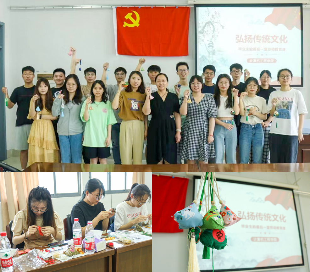 为贯彻新时代劳动教育方针,弘扬中华民族优秀传统文化,6月2日,学院组织毕业生开展“迎端午,制香囊” 劳动教育主题活动,师生们共同体验中国传统文化民俗,迎接端午节的到来。活动中,该院党委副书记刘艳华为大家讲解了香囊的文化、起源以及用途。随后师生边学边做,共同合作,通过装艾叶,穿绳、埋绳、封绳、缝香囊等程序,最终一只只精致香囊便呈现在眼前。本次端午香囊制作活动,不仅帮助同学们更深入地了解中国传统文化,传承中华传统技艺,同时有益于增强同学们的动手能力,引导毕业生在新的岗位上继续用实际行动发扬和践行劳动精神。