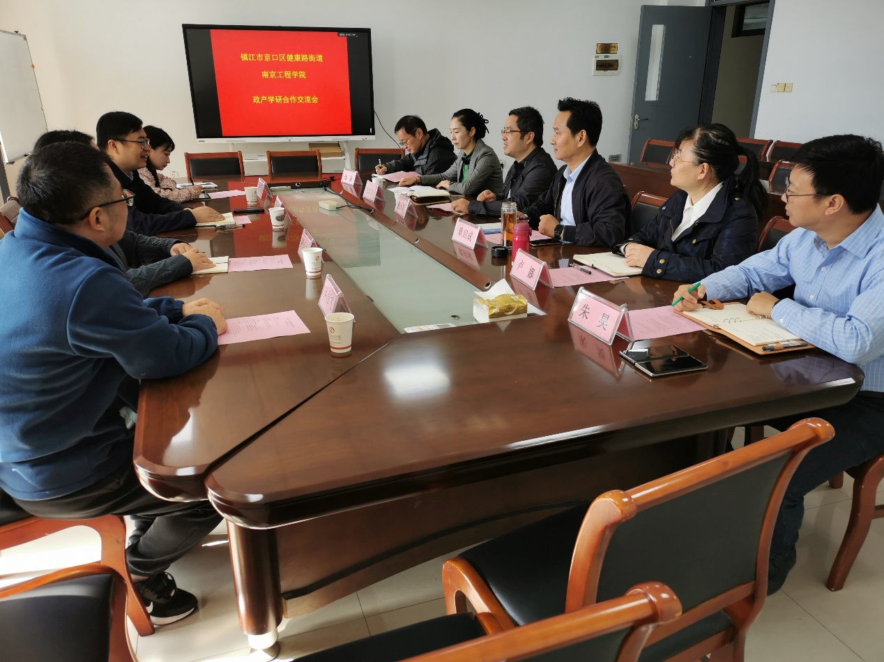 10月10日,镇江市京口区健康路街道党工委书记王志斌一行四人来信息与通信工程学院,就政产学研合作等工作进行交流访问。校党委组织部副部长王雪飞、信通学院负责人热情接待了来宾。