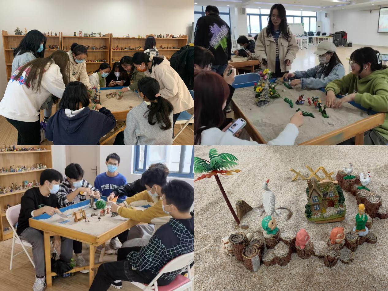 各学院积极组织学生以班级为单位预约参观,活动过程由校心理协会志愿者担任引导员,为同学们介绍心理中心的职能、心理咨询的预约流程及保密原则、心理健康教育活动的开展情况,同学们不仅参观了预约接待区、心理图书阅览区、心理咨询室、音乐放松室、团体辅导室、沙盘游戏区等功能室,还在心理老师的带领下体验了团体心理辅导、团体沙盘游戏和音乐放松椅。在团体辅导中,学生们通过合作游戏认识自我与他人,了解团体心理辅导的意义和组织形式;在团体沙盘游戏中,学生们乐在其中,感受了特殊的心理表达方式;在音乐放松室,学生们通过测试了解自己的压力情况,学会用健康合理的方式放松身心。
