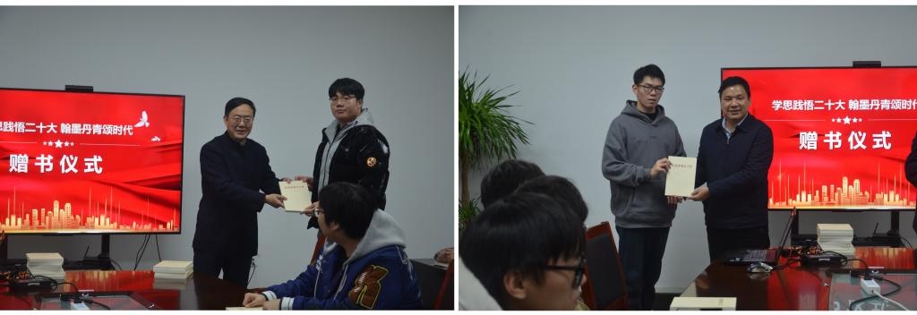 学党的二十大精神,勇做时代新青年。活动当天,关工委老师周明虎与部分学生干部代表共同学习二十大精神,为同学们讲述了精彩党史故事。他带领同学们学习了习近平总书记“对新时代青年的寄语”“青年兴则国家兴,青年强则国家强”两篇文章,并以自身年轻时的工作经历,为大家诠释了“奋斗”的涵义。他说,同学们在新的时代有更好的发展条件,国家也需要更加优秀的人才,要把个人发展融入国家发展,青年的奋斗才真的有底气和有意义!活动现场,工业中心党委书记王育荣与周明虎老师共同向与会学生赠送了习近平《论党的青年工作》著作。