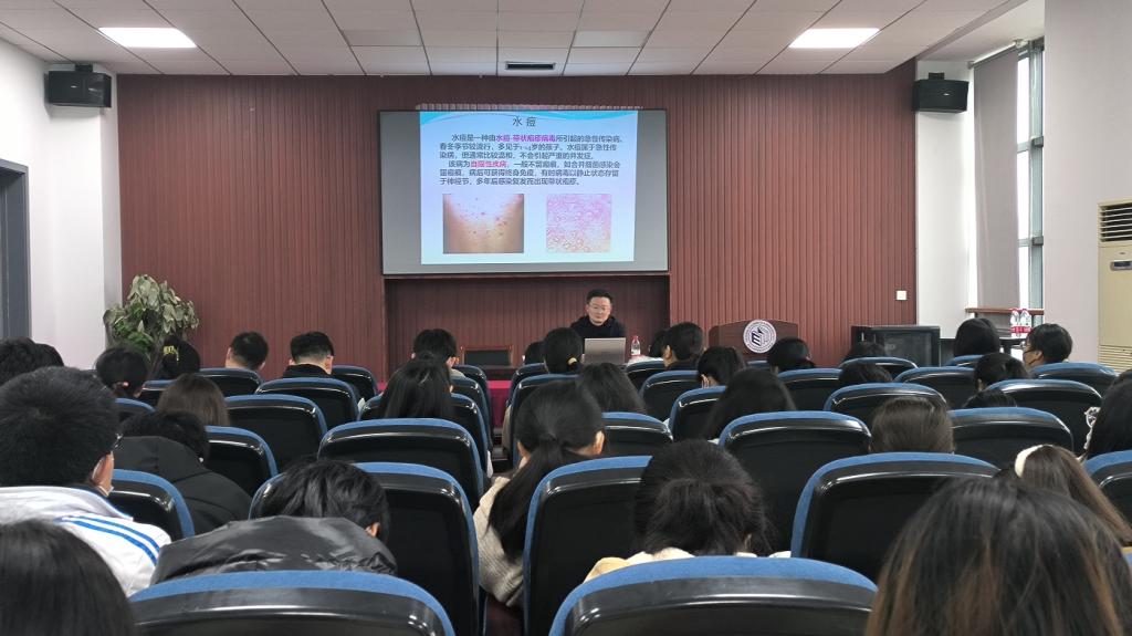 讲座中,叶长青主任详细介绍了春季常见传染疾病的类型、传播途径、主要症状及易感人群,使同学们了解了各类春季常见的传染疾病及其主要特点。他还结合具体案例对流感、水痘等常见的传染疾病作了详细讲解,提出了注意事项和预防措施,围绕卫生习惯、个人防护、免疫预防等方面讲解了如何科学预防春季传染疾病,使同学们对常见传染疾病的感染症状及预防措施有了更为系统的认识。讲座最后,叶主任提醒同学们要注意个人卫生、勤洗手、常开窗通风、注意加减衣物、加强户外体育锻炼、提高身体免疫能力,做到科学防护,避免传染疾病的侵袭。
