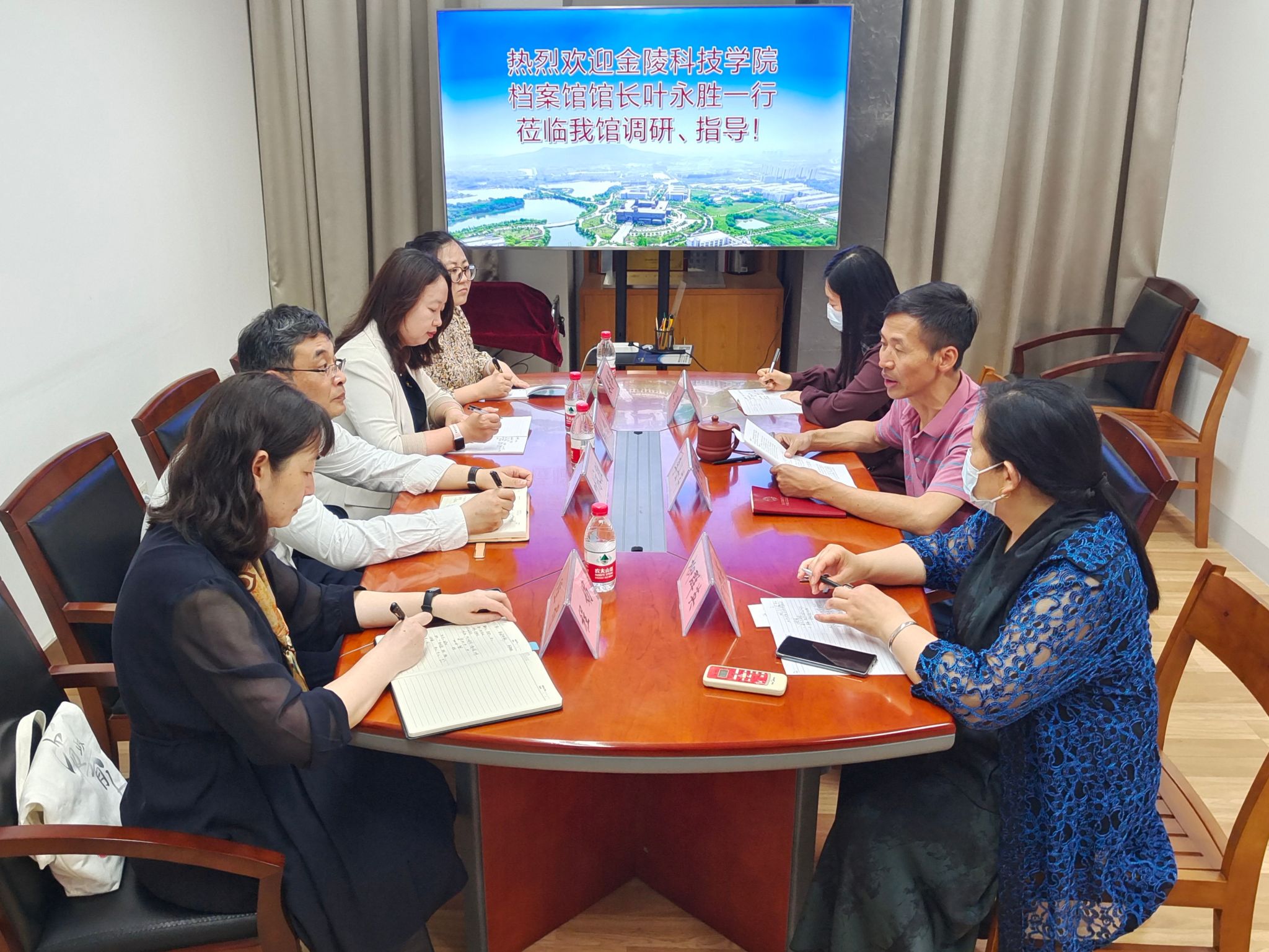 5月17日上午,金陵科技学院档案馆馆长叶永胜一行四人来永利官网档案馆调研。校档案馆馆长李士芹、档案一室主任柳群英及相关工作人员进行了热情接待。