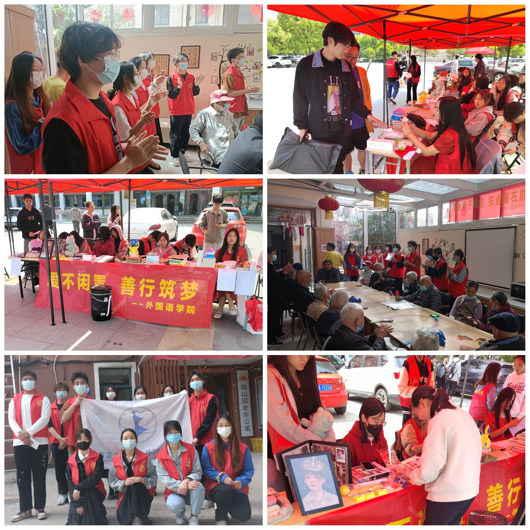 携手凝聚强合力,爱心点亮新希望。为共同营造乐于奉献、团结奋进的团支部氛围,传递青春正能量,学院九个团支部联合开展“爱不闲置,善行筑梦”爱心义卖活动,引导团员青年关注社会、勇担责任、传递温暖。活动现场人头攒动,流通的不仅仅是闲置物品,更是师生们的爱心与善意。在支部青年的宣传动员、爱心学生的驻足支持下,活动取得了较好的反响,所得善款由团支部负责人通过平台捐赠至儿童慈善救助基金会。商务英语211团支部携手其他团支部,组织青年学生深入老年公寓,陪同老人们散步锻炼、下棋谈心,通过实际行动传递爱意与温暖,让老年公寓里增添了一股青春的气息。