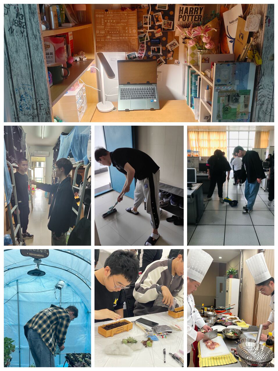 宿舍清洁、实验室整理、除草种花、学厨烹饪……各班级在校园内外开展义务劳动工作。组织全体同学开展宿舍大扫除,并充分发挥优秀朋辈的榜样示范作用,针对党员宿舍、优秀文明宿舍等进行网络直播,“直播”劳动过程,“晒出”劳动成果,引导更多的学生养成良好生活劳动习惯;而在劳动实践基地里,同学们也是干得热火朝天,除草松土、浇水灌溉,学习多肉、草莓等植物的种植和养护。同学们纷纷表示,“这样‘接地气’的劳动实践,不仅让我们掌握了新技能,更体验到了劳动果实的来之不易!”除此以外,该院还举办了“‘烹’然心动,不负‘食’光”主题实践活动,在洗菜、切菜、炒菜一系列操作中感受“人间烟火气”,在出汗出力、有付出也有收获的劳动体验中,体会劳动的快乐,学会懂得珍惜劳动成果,增强当代青年的社会责任感。