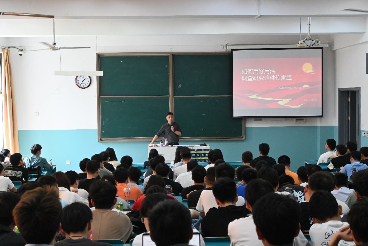 为深入学习贯彻《关于在全党大兴调查研究的工作方法》,研究生党委书记、处长谭文轶以“如何做好调查研究”为主题开展专题讲座。讲座中,谭书记紧紧围绕“调查研究”,详细介绍了党和国家领导人对调查研究的论述、调查研究的十二个重点内容、六个方法步骤、十八种调研方法以及调查研究的经典案例,要求同学们坚持“学思用贯通、知信行统一”,在研究中合理运用“调查研究”这件传家宝去思考和解决实际问题。有效引导大家在日后研究工作中精研深思细悟,将调研活动与转变工作作风、增强党性修养结合起来,既能从大局出发,把握本质规律,又能争当表率、争做示范、走在前列。