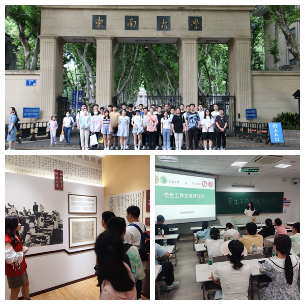 话成长,激扬青年蓬勃力量。“这里是吴健雄纪念馆!而吴健雄女士是中国杰出的女性物理学家、世界物理学界的传奇人物,被誉为‘核子物理女皇’‘中国的居里夫人’。”当天下午,东南大学能源与环境学院研究生党支部书记、该院2019届毕业生江栋军同学利用东南大学校园内的“梅庵”和“吴健雄纪念馆”等红色教育基地,以“实景漫步+现场党课”形式,带领同学们在红色党史的行走践学中感悟党的二十大精神;随后两个学院主要学生干部就“如何将理论学习运用到实际学生工作中去”开展交流研讨活动,他们分别介绍了各自学院在从思想引领、组织建设、校园文化、科技创新等方面开展学生工作的情况,并就工作中存在的重点、难点、堵点问题进行深入研讨,互学互鉴,聚力推进学生工作高质量发展。