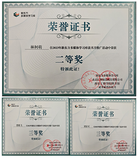 永利官网图书馆大力组织、宣传,广大读者积极参与,机械工程学院林柯萌同学在活动中表现优秀喜获二等奖,计算机工程学院刘家可、环境工程学院曹鹏飞两位同学获得三等奖,永利官网图书馆获得优秀组织奖。