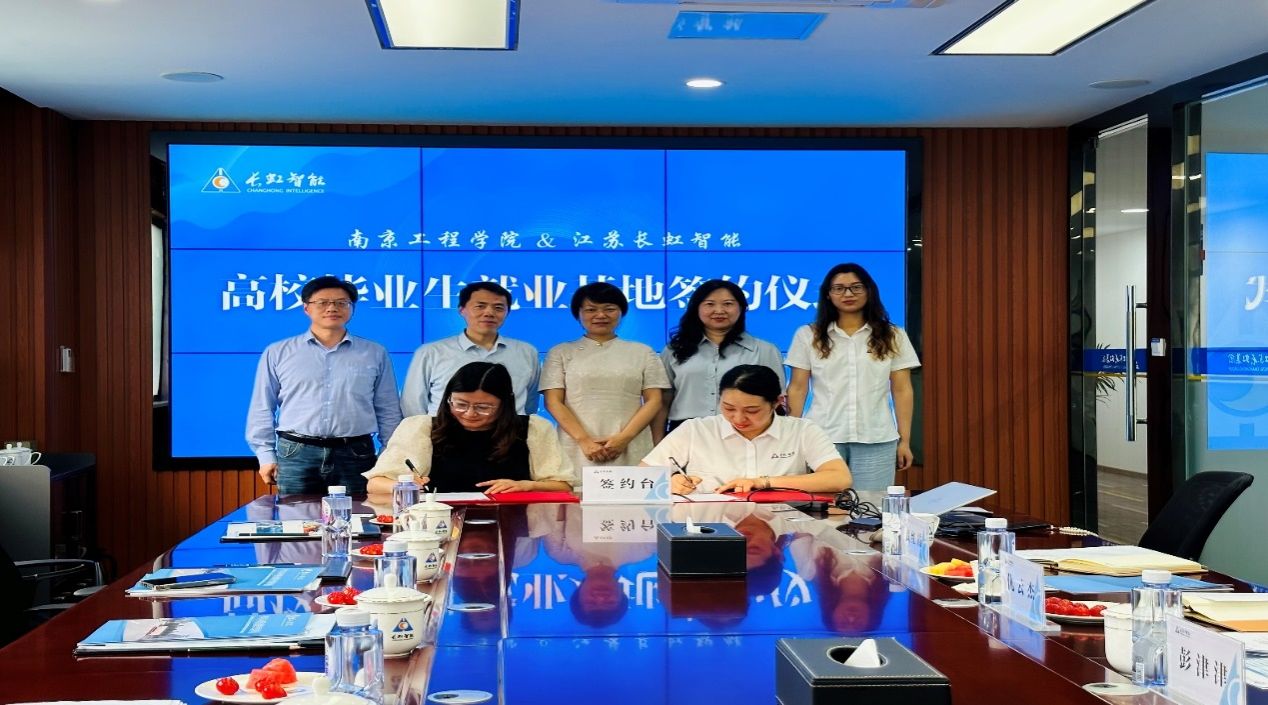会上,校企双方共同签署了大学生就业基地合作协议。座谈会前,学院一行参观了长虹公司设计院与生产车间。