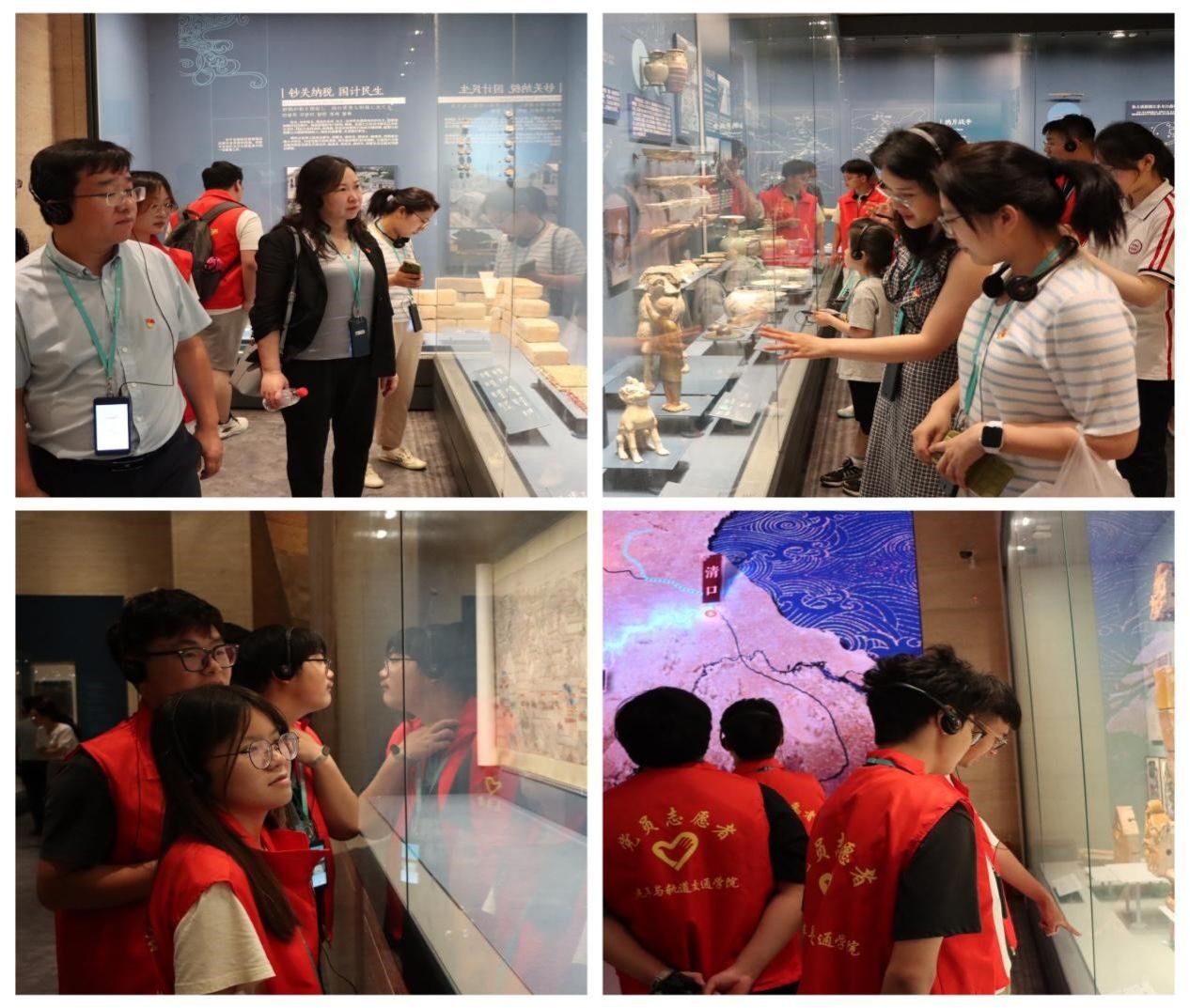中国大运河博物馆是学院师生党员调研的第一站。作为国内首座集文物保护、科研展陈、社会教育于一体的现代化综合性运河主题博物馆,中国大运河博物馆全方位展现了大运河的历史文化底蕴和时代价值。大家依次参观学习“大运河——中国的世界文化遗产”“因运而生——大运河街肆印象”两个基本陈列和“运河上的舟楫”“运河湿地寻趣”等九个专题展览,沉浸式体验高科技还原的运河历史变迁,深入了解大运河对中华民族社会、经济、文化等方面发展所产生的深远影响。学院师生党员与共建党支部-机关党委团委党支部书记臧利国开展联学互动,不时交流大运河历经千年岁月的沧桑变迁,在国家治理、文化融合、对外交往、河工技术等方面的卓越贡献,特别是在交通运输方面蕴含的中国智慧。王薇薇书记引导大家在深入学习了解运河文化的过程中,充分感受大运河丰富的文化内涵,不断增强文化自信与民族自豪感。臧利国书记激励大家要不断提升专业素养和能力,注重科技创新,为实现新时代的“交通强国”战略贡献自身力量。
