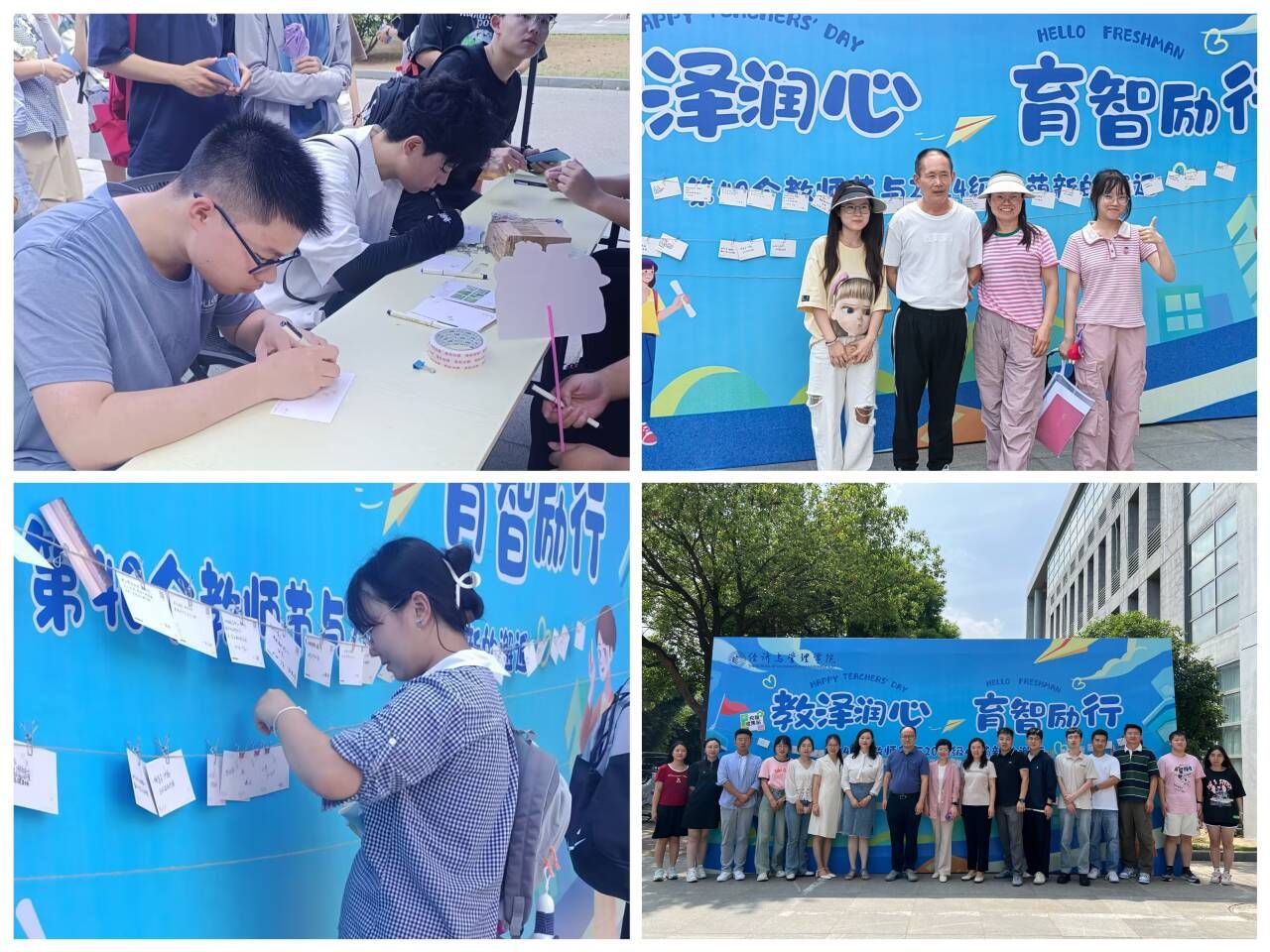 纸短情长,师生心语绳间漾。新生报到日,学院搭建起“教泽润心,育智励行”互动展板,邀请老师、学生和新生家长在明信片上写下对老师的真挚祝福,记录师生彼此的浓浓情意,并亲手夹在背景墙上。“老师,祝您教师节快乐!幸福安康!”“老师,谢谢您,愿越来越美丽,开心每一天!”一句句饱含真情的话语印刻在明信片上,满载师生对彼此的祝福。