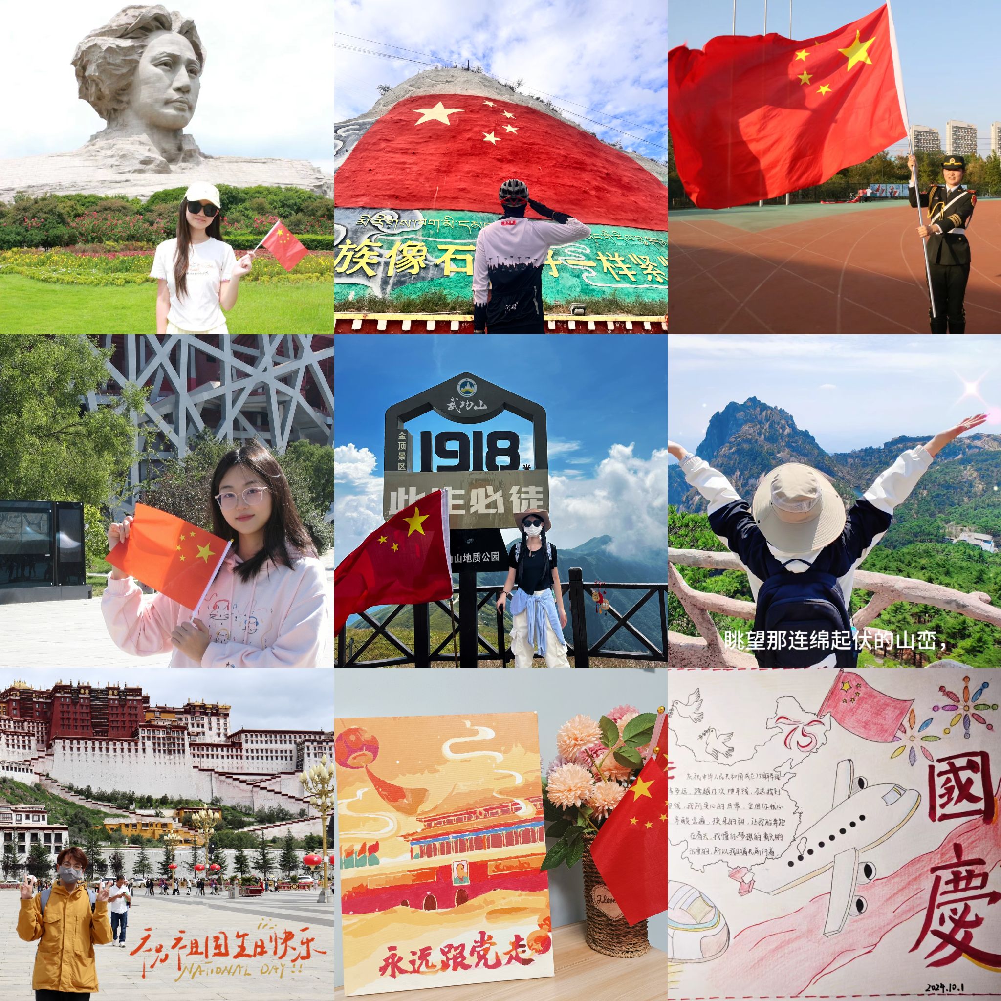 以青春之名,向祖国告白。国庆长假期间,该院组织开展了“我与国旗合个影”创意拍照、“我为祖国大好河山点赞”照片、“我为祖国庆生”书画海报视频等线上征集活动,得到了全院师生的热烈反响,累计收获百余篇作品。“能生在华夏,长在华夏,我感到无比自豪,今后也要不忘初心,砥砺奋进,为祖国贡献青春力量。”该院师生不仅上传了与国旗的创意合影,还表达了对祖国母亲最真挚的热爱和祝福。
