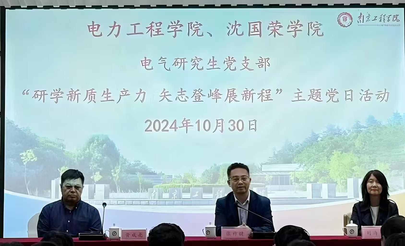 为深入学习贯彻习近平总书记关于新质生产力的重要论述,引导研究生党员深刻领会新质生产力的科学内涵,推动研究生“党建+科研”深度融合,10月30日,电力工程学院、沈国荣学院党委组织电气研究生党支部党员和入党积极分子代表在至勤楼·行政中心学术报告厅开展“研学新质生产力 矢志登峰展新程”主题党日活动。