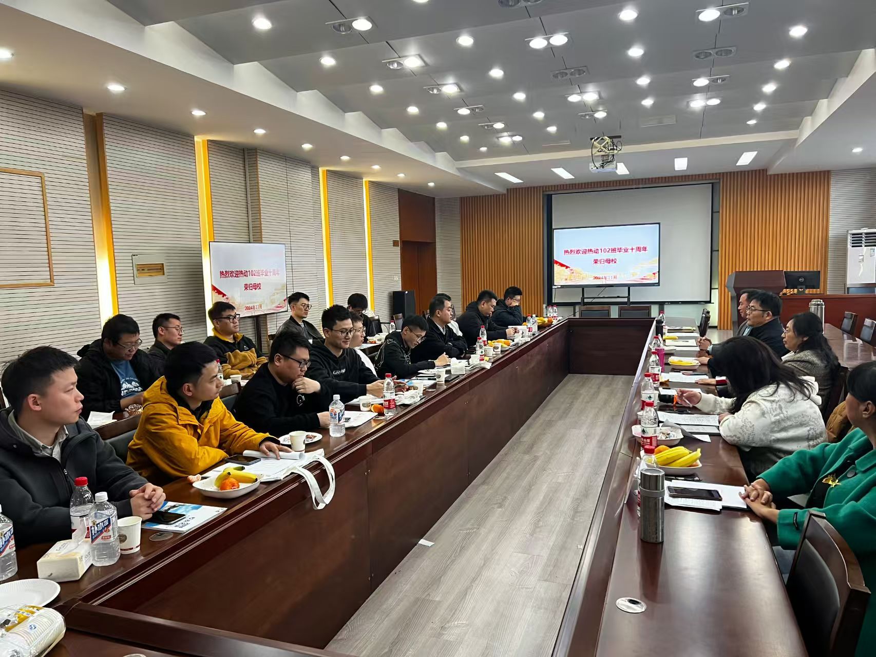 历尽千帆,归来仍是少年。11月23日,能源与动力工程学院热动102班23位校友从天南海北齐聚母校,共赴十年之约,畅叙同窗友情,聆听师长教诲。该院党委书记徐艳,副院长薛锐(主持工作)、党委副书记朱正林,环境工程学院党委副书记、时任辅导员侯昀,班主任朱李莉以及该院校友秘书、教师代表等参加了此次聚会。