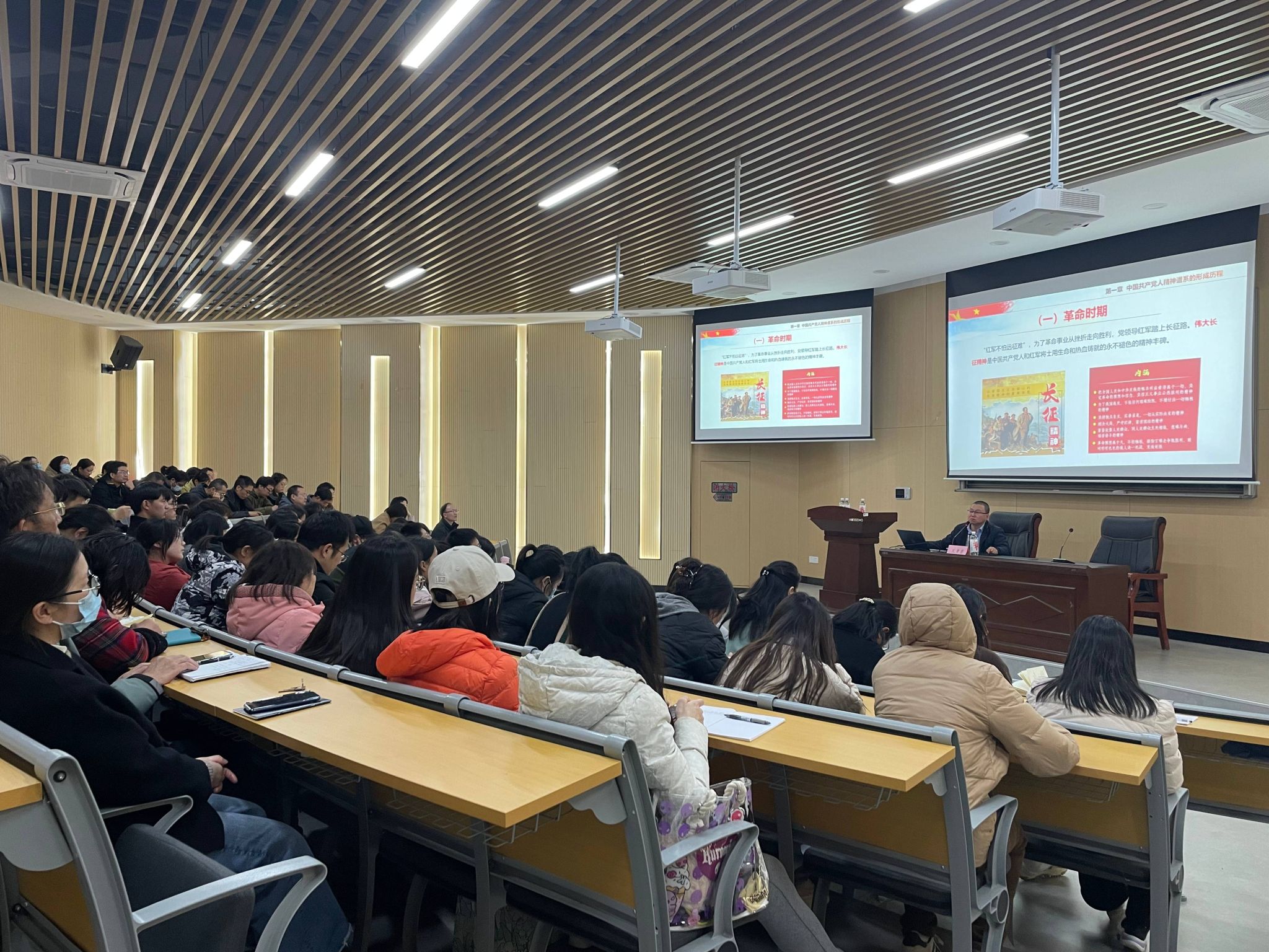 王孝勇以生动的语言、丰富的史料,深入浅出地阐述了中国共产党人精神谱系的历史起源、精神内核、实现主体和时代价值,通过一系列鲜活的历史案例,生动展现了在不同历史节点上,中国共产党人所展现出的崇高精神。他指出,红船精神是中国共产党人精神谱系的伟大开篇,是中国共产党人理想信念的起点,是党在长期奋斗中所积淀的宝贵经验和精神财富。“在新时代的征程上,我们要继承和发扬伟大精神,坚定信念,内化于心、外化于行,为实现中华民族伟大复兴的中国梦而努力奋斗。”与会师生深受启发、倍受教育和鼓舞,表示今后将以伟大精神为引领,在建设一流应用型大学的征程上奋勇争先,为推动学校高质量发展汇聚起磅礴精神力量。