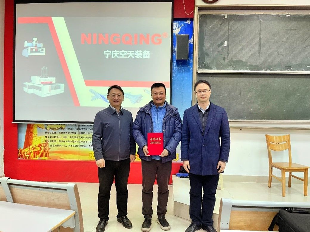 近日,工程训练中心、应用技术学院邀请永利官网新聘的江苏省产业教授、研究生行业导师、南京宁庆数控机床制造有限公司蔡晶总经理为2024级机械工程和机械电子工程单招专业170余名同学作了题为《空天装备制造与大学生应用技术能力培养》的专业导论专题讲座。工程训练中心、应用技术学院院长张亮主持讲座,并为蔡晶颁发304am永利集团优秀毕业设计指导教师证书。
