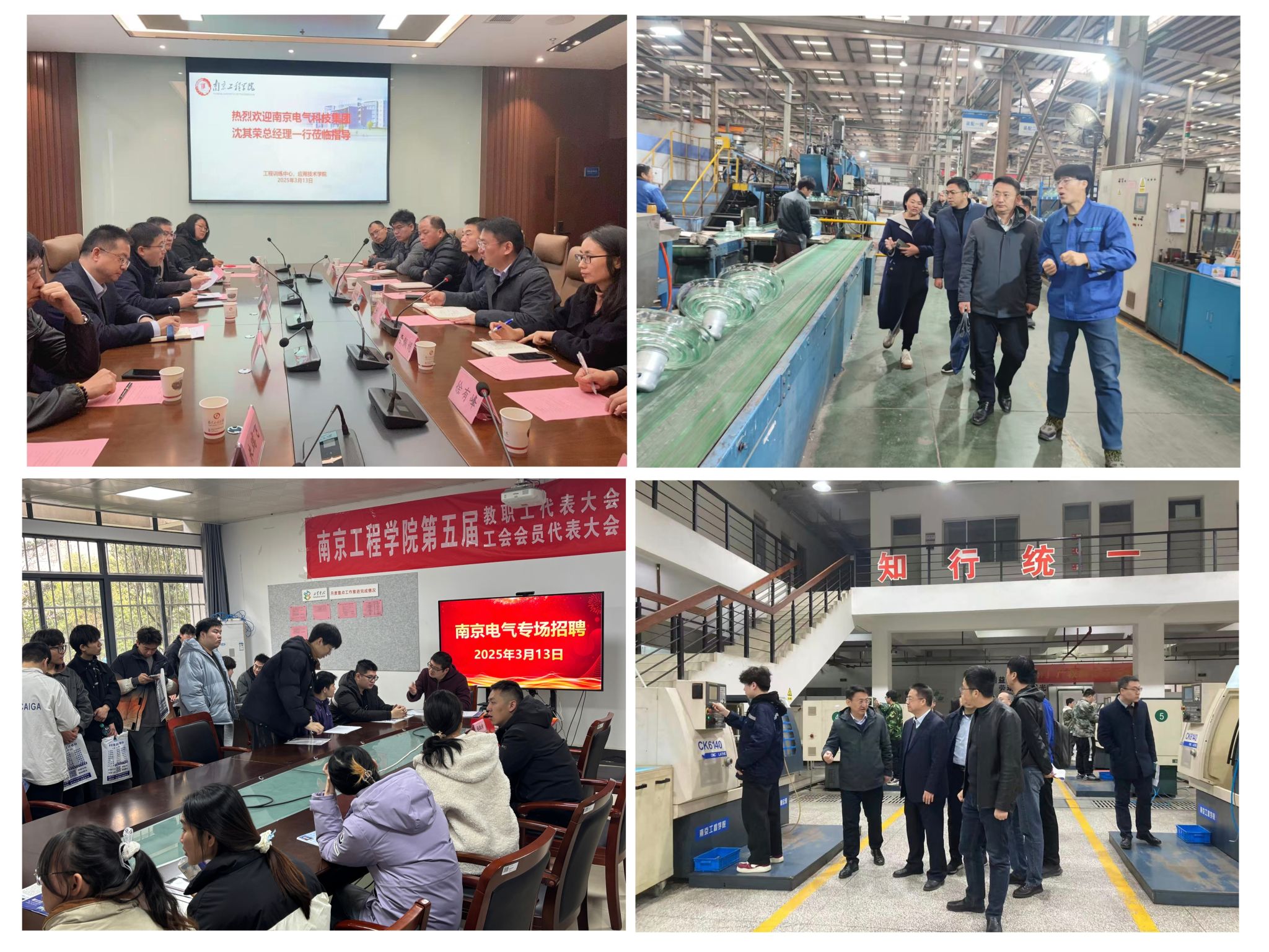 会上,张亮重点介绍了学院办学特色、科研团队和科技成果情况,期待与南京电气在新型电力装备、重大科研项目和平台建设等方面共同发力,共建大学生实习实训等基地,推动应用型人才培养和定制,努力成为区域校企合作的典范。沈其荣对学院人才培养和科研情况予以高度肯定,介绍了集团以数字化、智能化推动“制造业+”转型,深化用户技术协同创新,引育高技能人才的三大战略维度,并希望建立长期稳定的人才联合培养和输送渠道,在技术攻关、人才培养等领域形成合力,以突破技术瓶颈、加速成果转化。双方就智能装备和生产线升级等技术细节开展深入交流,并讨论了具体合作路径。