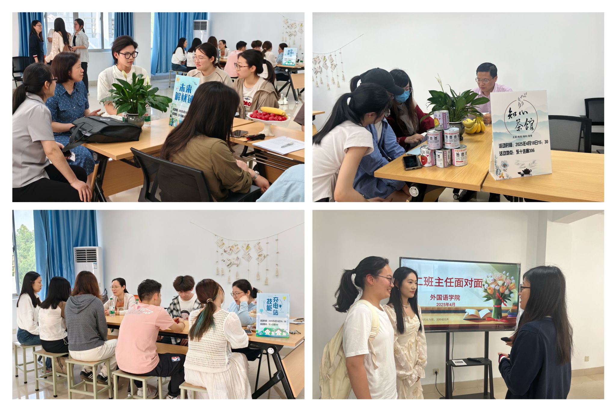 4月18日,外国语学院党总支创新启动"三坊联创"成长护航计划,组织党员干部进驻一站式学生社区,通过"知心茶馆""技能充电站""未来解忧坊"三大主题工坊,以"自主选坊+定制辅导"的交互模式,与学子展开深度对话,精准破解成长方程式。