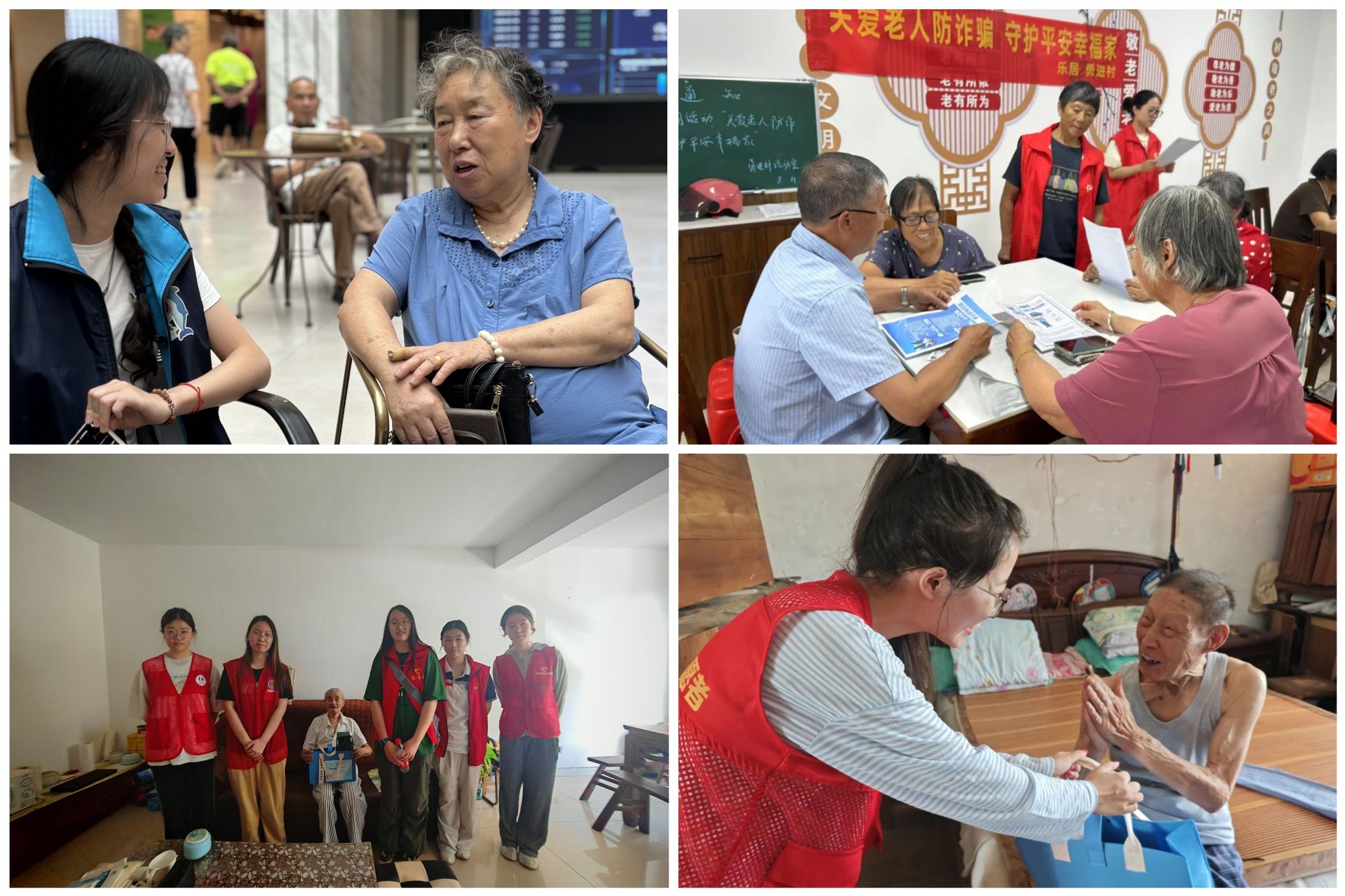 青春守护夕阳红。实践队员们有序整理活动资料,为社区工作的高效运转提供保障;定期前往老年人活动室,陪老人聊天、组织文娱活动,为晚年生活增添温暖。聚焦社区老龄化特点,队员们结合高发电信诈骗、保健品推销等真实案例,为老人详细拆解“免费体检”“冒充亲属求助”等常见套路,筑牢安全防线。在关爱老党员活动中,队员们送去防暑物资,与老党员围坐一堂,倾听他们的革命经历与初心故事,在传递清凉关怀的同时,让红色基因薪火相传。